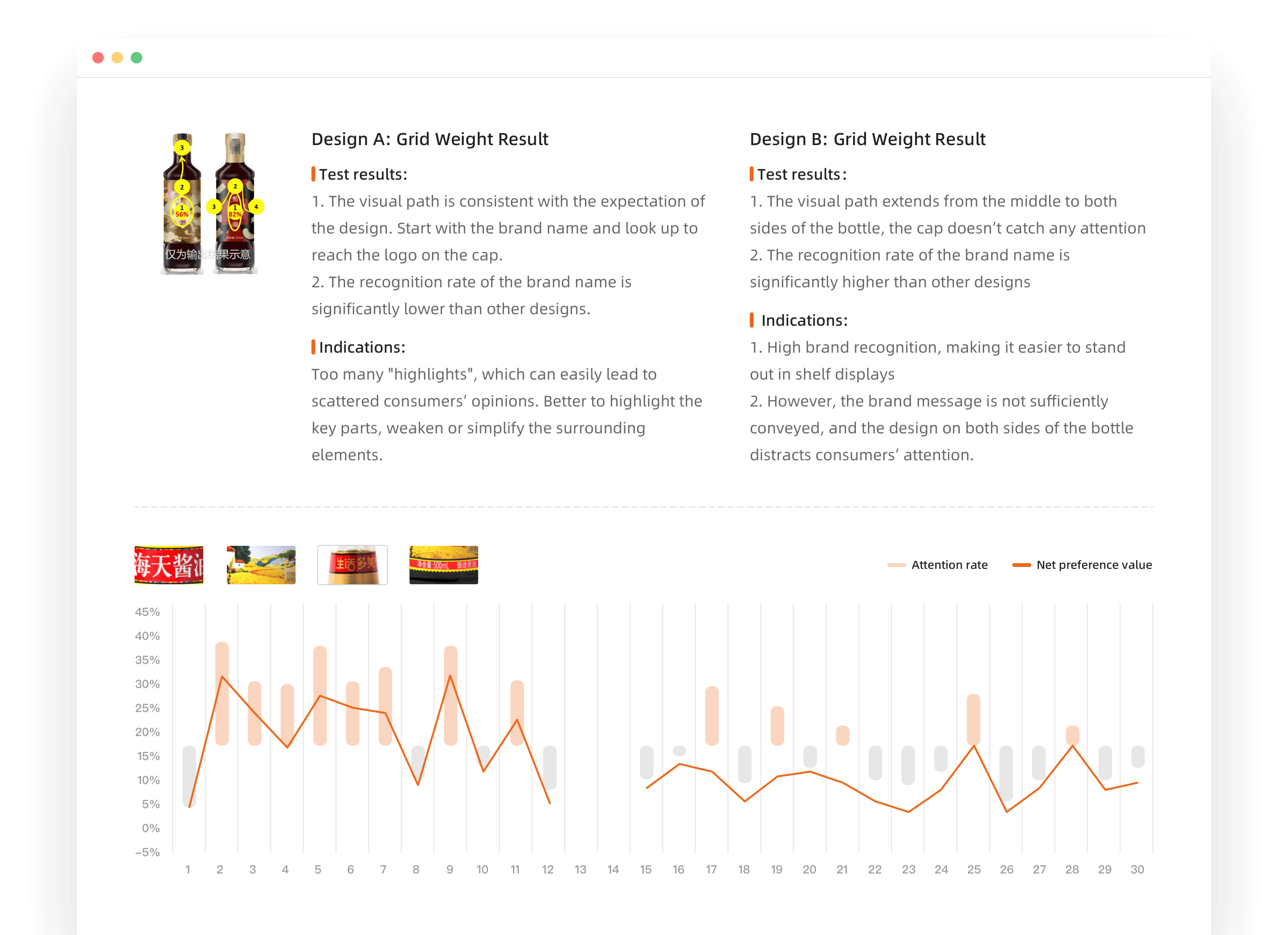 Test the attractiveness of display elements in various types of graphic materials, such as advertisements, web pages, packaging, etc
